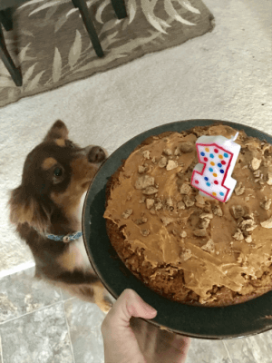 We hosted a dog birthday party and invited some of Lady’s friends over to help her celebrate, and each pooch heartily gobbled up his/her slice of cake. Needless to say, it was a huge hit! Plus, dog parents also in attendance loved that their pet got to enjoy a sweet yet healthy treat.
